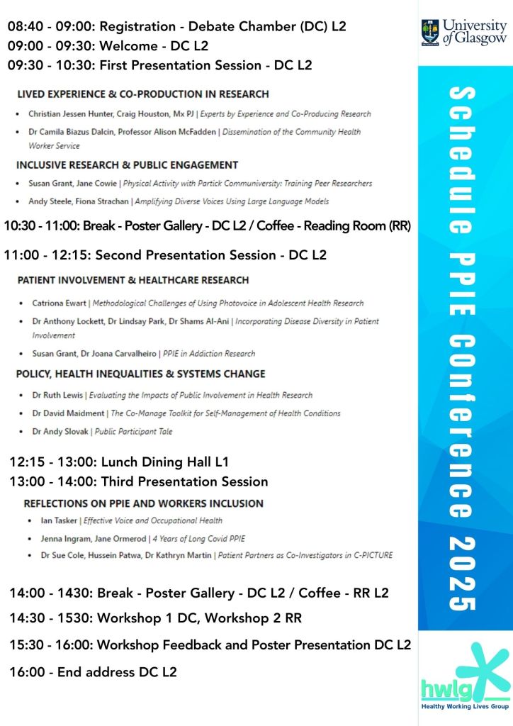 The Healthy Working Lives Group (HWLG) PPIE Conference will take place at: University of Glasgow Union (GUU)